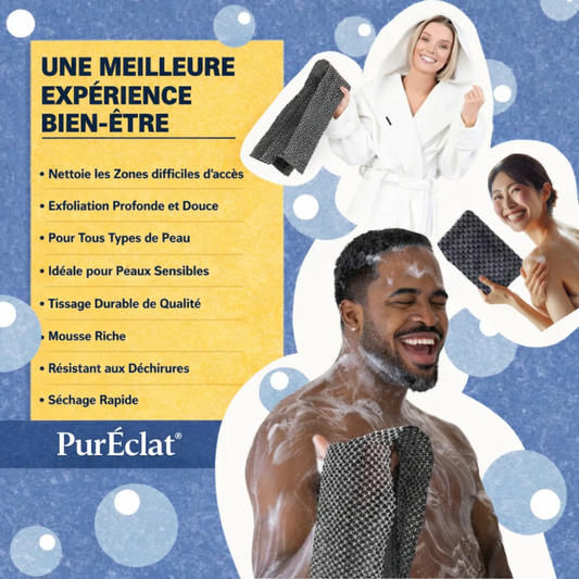 PurÉclat® – Serviette douche exfoliante antibactérienne renforcée